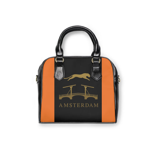 Amsterdam Bridge Tote Handbag — Orange & Black Cityscape Design